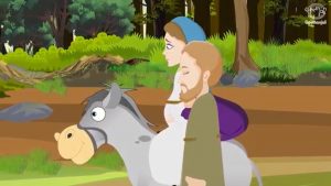 Շատ յոգնեցուցիչ ճամբորդութենէ մը ետք, երբ անոնք հասան Բեթղեհէմ, գիշերելու տեղ չկրցան գտնել եւ ստիպուեցան քարայրի մը մէջ կենդանիներուն հետ գիշերել, :