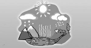 (ովկիանոսներէն, ծովերէն, լիճերէն) կը գոլորշիանան ու երկինք կը բարձրանան: Ծառերու