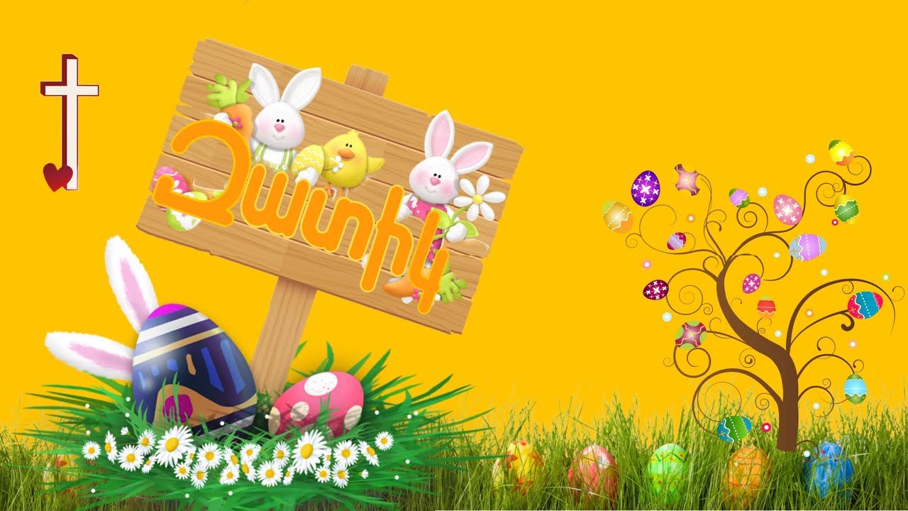 Ահա եկաւ նորէն գարուն, Ուրախ զատիկ մտաւ մեր տուն. Կարմիր հաւկիթ, դեղին ճուտիկ, Եւ նապիկը ճերմակ փափլիկ։ Հարազատներ, ճաշեր պէսպէս, Հաւկթախաղ՝ յաղթող, պարտուող Ու բարեւի փոխարէն՝ Քրիստոս յարեաւ ի մեռելոց, Օրհնեալ է յարութինը Քրիստոսի։ գրեց՝ ՀԱՅԿԱՇԽԱՐՀ